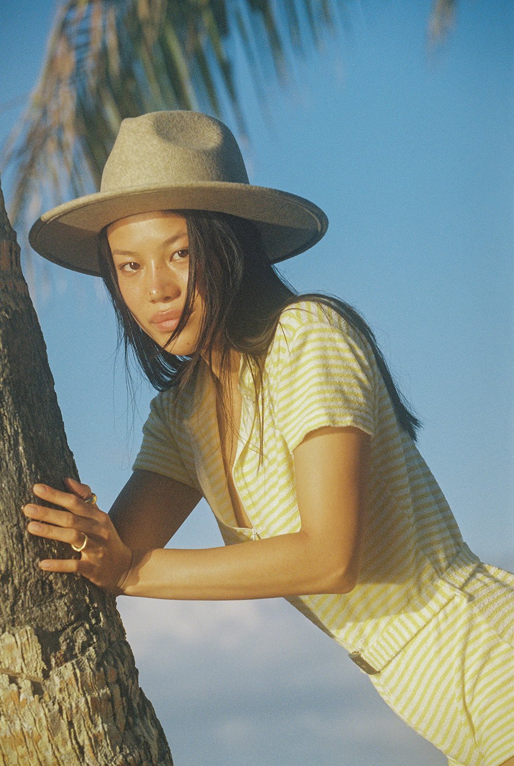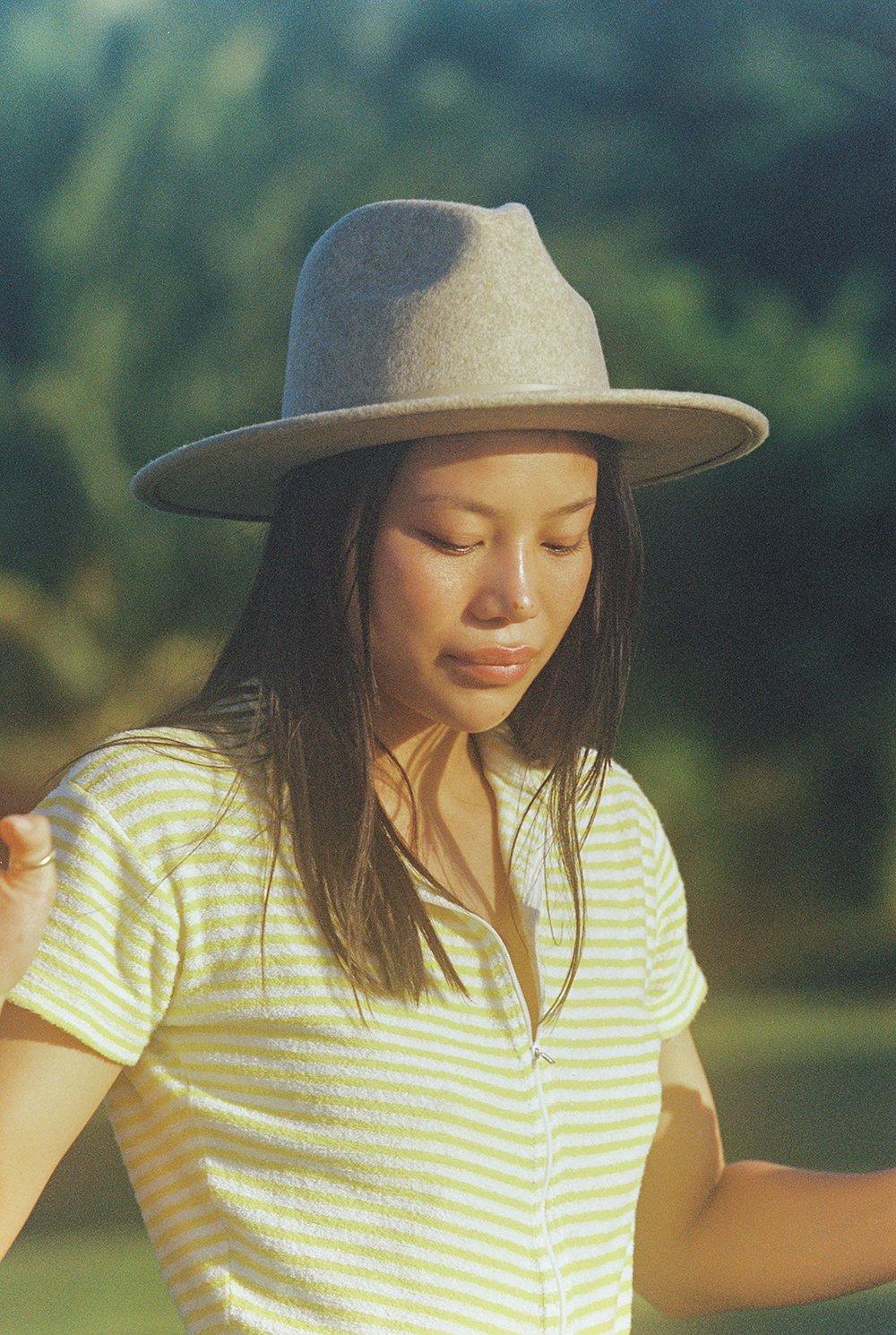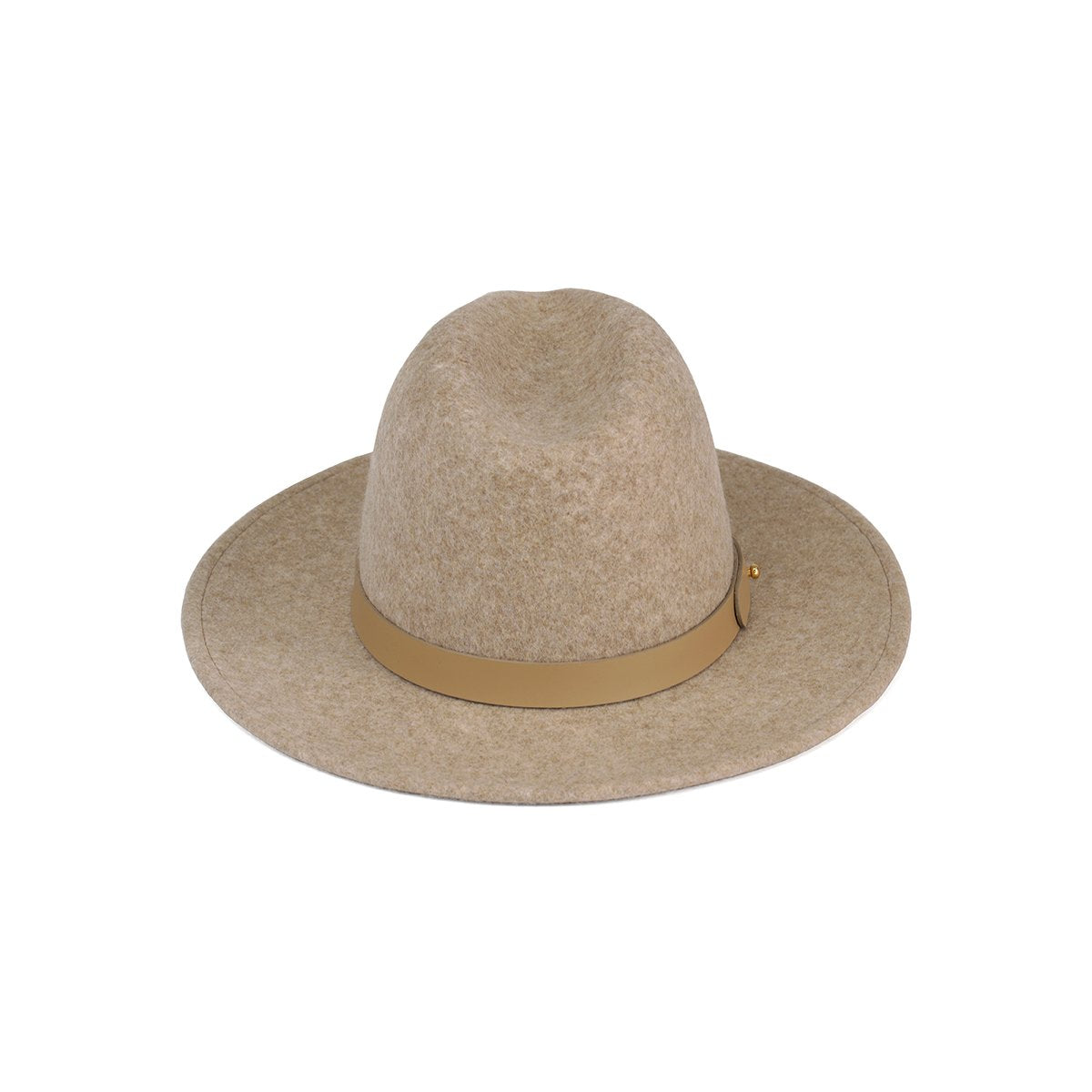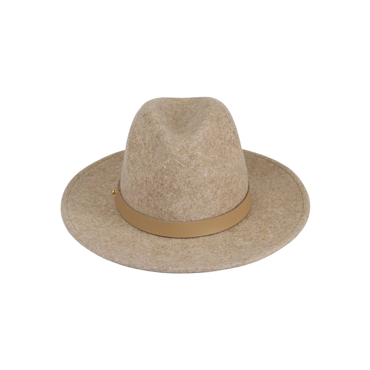 Our classic luxe fedora style is an easy and accessible staple piece. Featuring a tall crown design, soft structured wool with a sewn edge and finished with premium gold stud detail and genuine leather band.