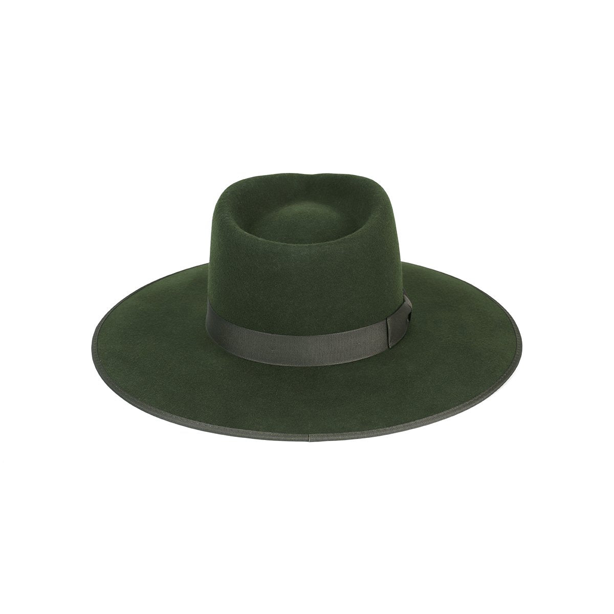 Trimmed with tonal Forest Green gross grain edged hat rim and bow ribbon detail