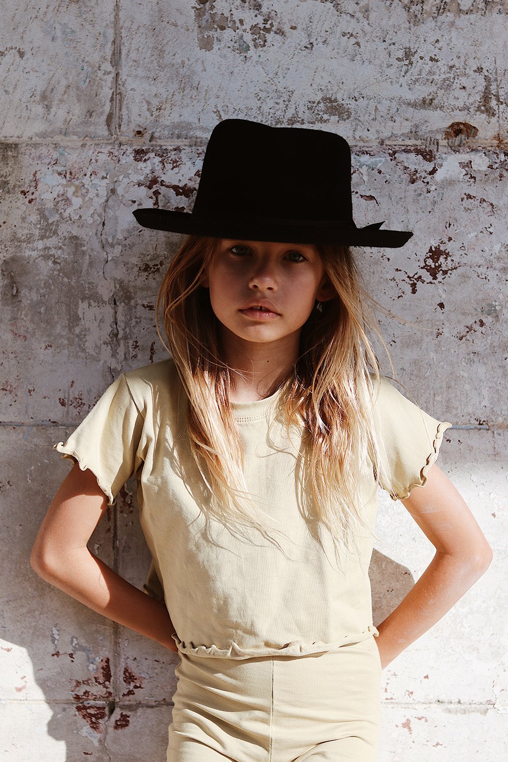 Now available in mini... Our vintage classic fedora silhouette has received a fresh update. Now featuring a flicked edge and taller crown, the Jethro II is the perfect hat for both your mini.
