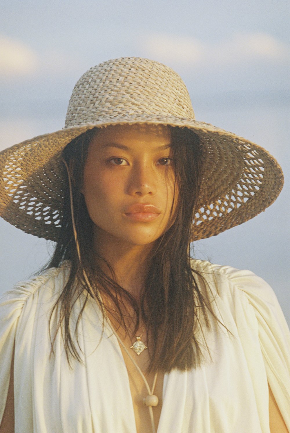 Woven palm leaf dome hat with sun freckle holes and reversible brim. Brim can be worn domed down, flicked up or half/half for an individualised look.