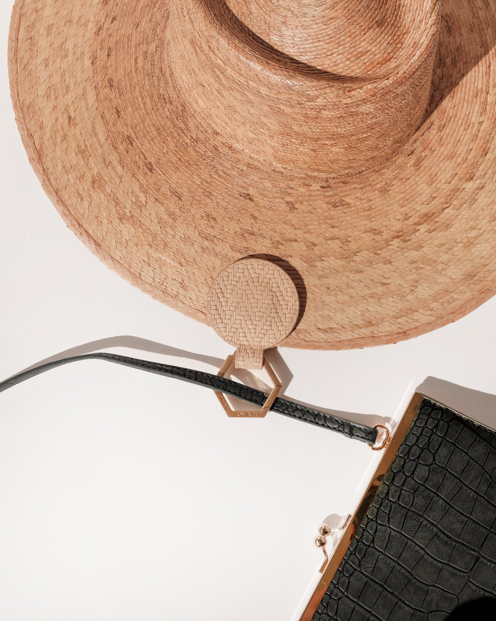 We've partnered with Lindsay Albanese, creator of TOPTOTE® to design an exclusive hat holder to make traveling with your hat easier! Just clip it to your handbag, tote, luggage, or belt loop, separate the magnetic ends and attach it to the brim of your hat. We know traveling with a hat is not always convenient, so we're excited to offer this solution to effortlessly travel with your hat hands-free.