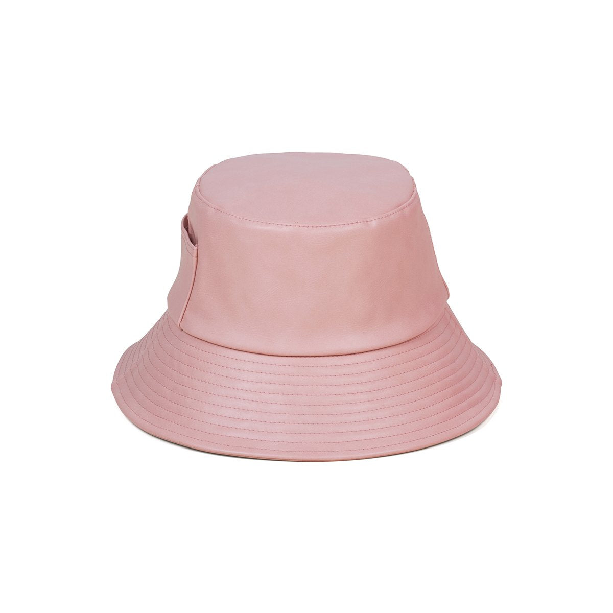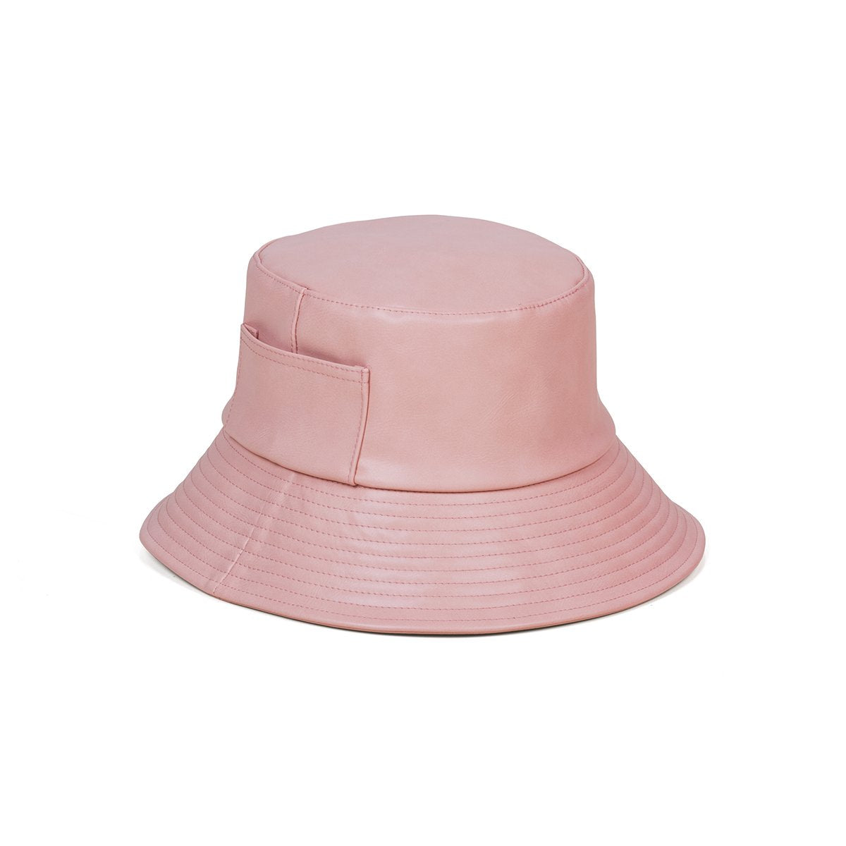 Our cool and simple bucket hat. This vegan leather bucket is an easy to wear style for a sun-safe, street look.